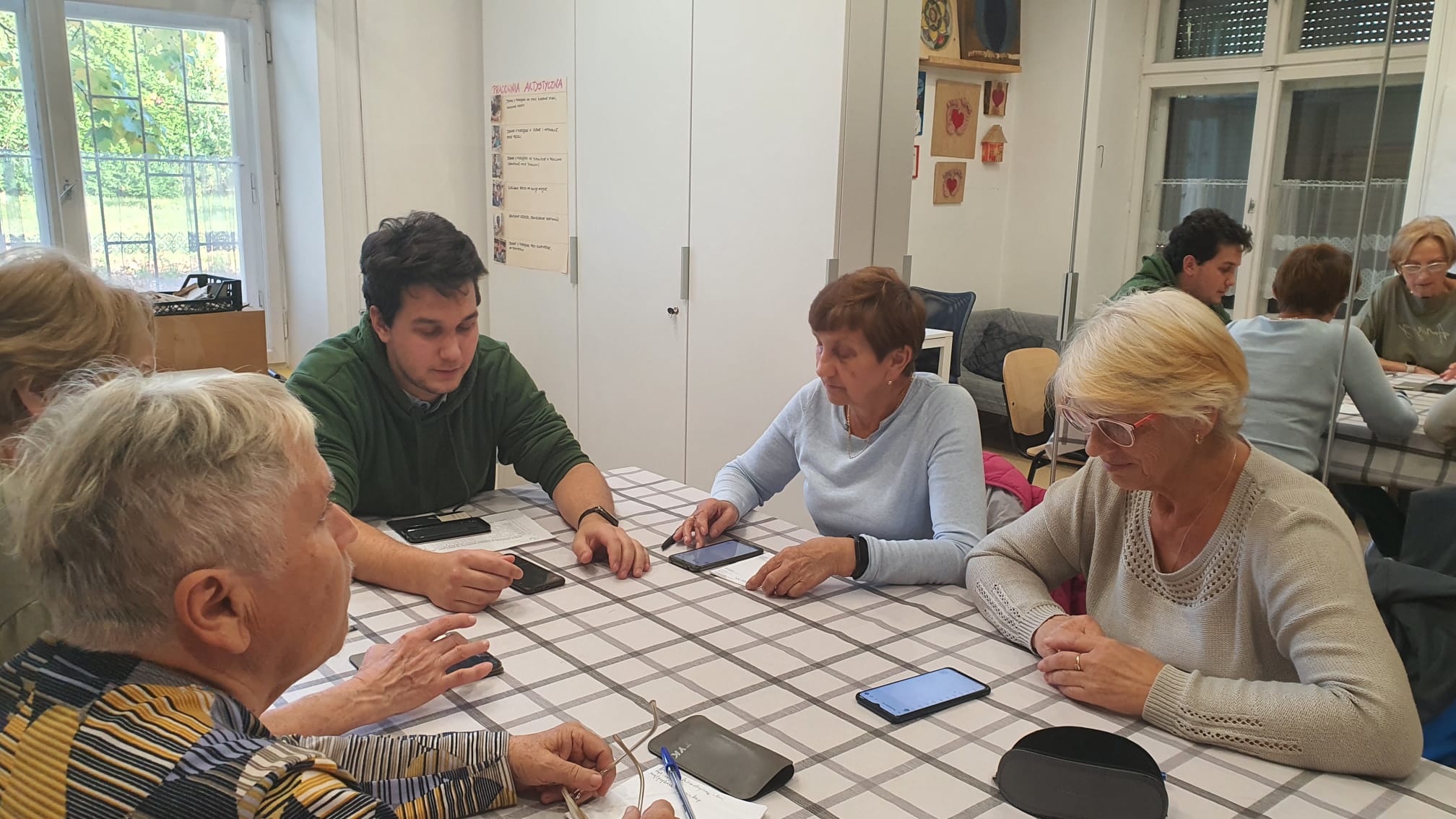 - Zajęcia dotyczące usprawniania korzystania z komunikatorów tekstowych i głosowych. Spotkania te dla osoby starszej przynoszą korzyści poprzez ułatwienie skutecznej komunikacji z rodziną, przyjaciółmi i innymi, umożliwiając utrzymanie silnych więzi społecznych pomimo fizycznej odległości, co wzbogaca życie emocjonalne i zapewnia wsparcie oraz integrację w cyfrowym środowisku.